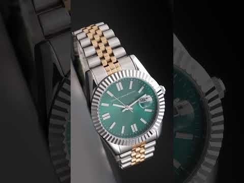 French Connection Men's Analog Gold Watch | Dated Green Sunray Ro...