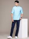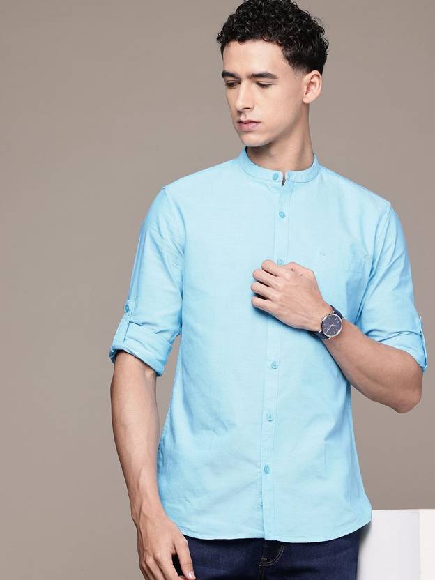 French Connection Men Solid Casual Blue Shirt
