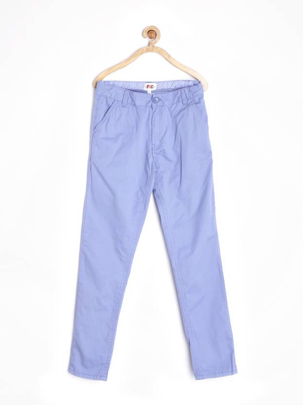 Boys Skinny Fit Blue Cotton Blend Trousers
