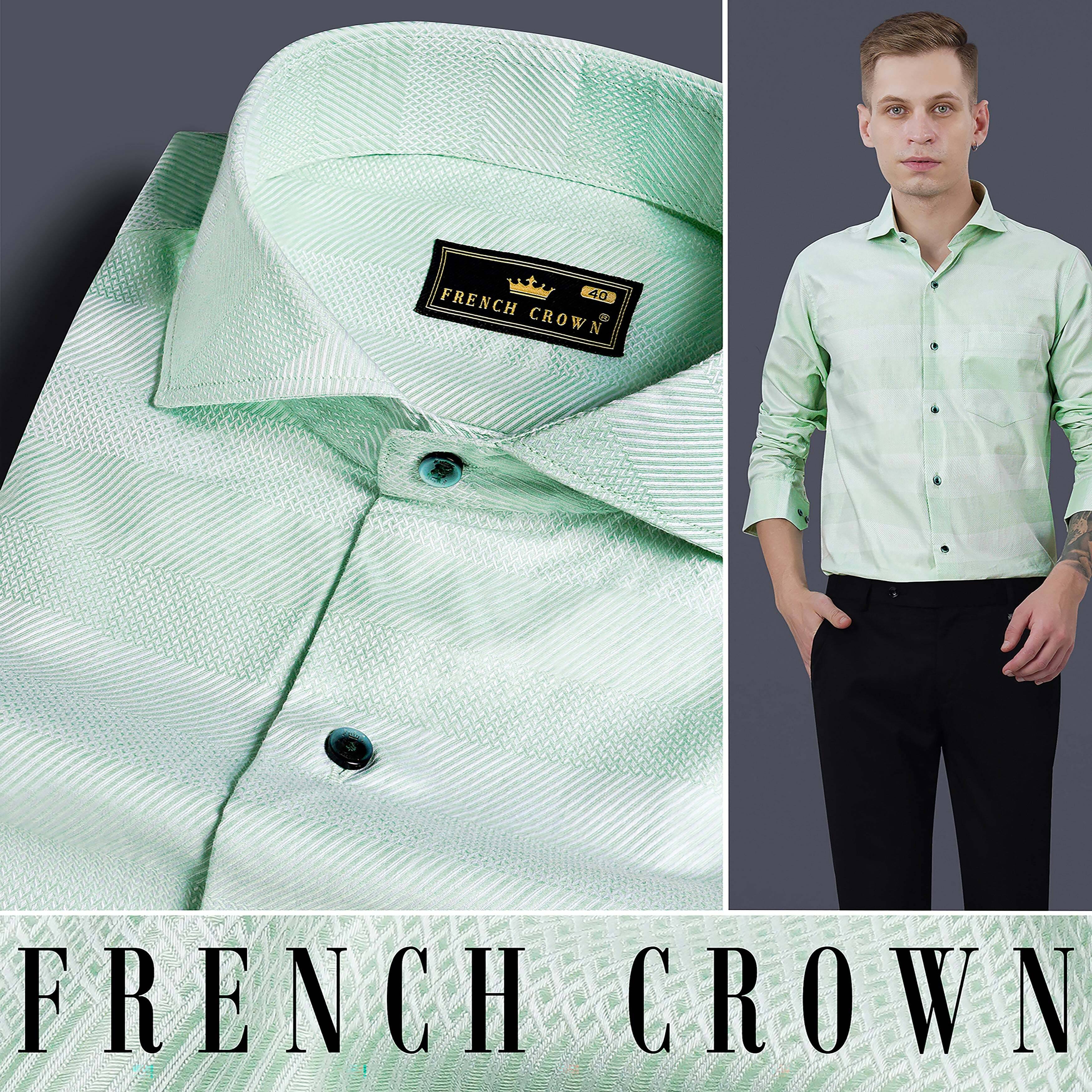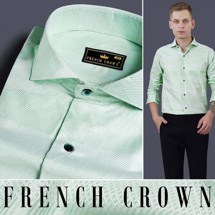 Introducing our Pixie Green Dobby Textured Premium Giza Cotton Shirt with a distinguished cutaway collar. Revel in the seamless fusion of style and comfort as the dobby texture enhances the vibrancy of Pixie Green. This shirt is your gateway to refined elegance, ensuring a distinctive and fashion-forward presence in any setting.