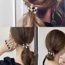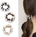 FRESCORR Pack of 3 Pearl & Crystal RhineStone scrunchies,Hair Ties, Ponytail Holder Rubber Band (Multicolor)