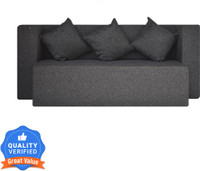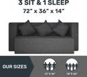 Fresh Up Jute Fabric 72x36x14 Inches with 3 Cushion Cover 3 Seater Double Foam Fold Out Sofa Cum Bed (Finish Color - Dark Grey Delivery Condition - Pre-assembled)