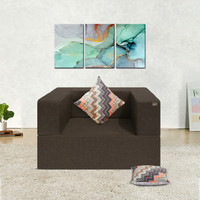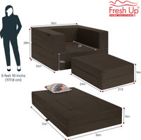 Fresh Up Sofa cum Bed with Foot Stool 72x36x14 inches Jute Fabric with Cushion 1 Seater Single Foam Fold Out Sofa Cum Bed (Finish Color - Dark Brown Delivery Condition - Pre-assembled)