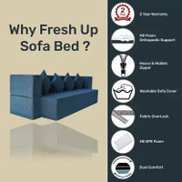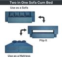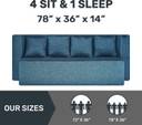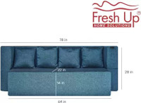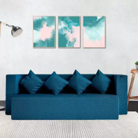 Fresh Up Jute Fabric 78x36x14 Inches with 4 Cushion Cover 4 Seater Double Foam Fold Out Sofa Cum Bed (Finish Color - Blue Delivery Condition - Pre-assembled)