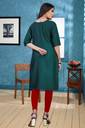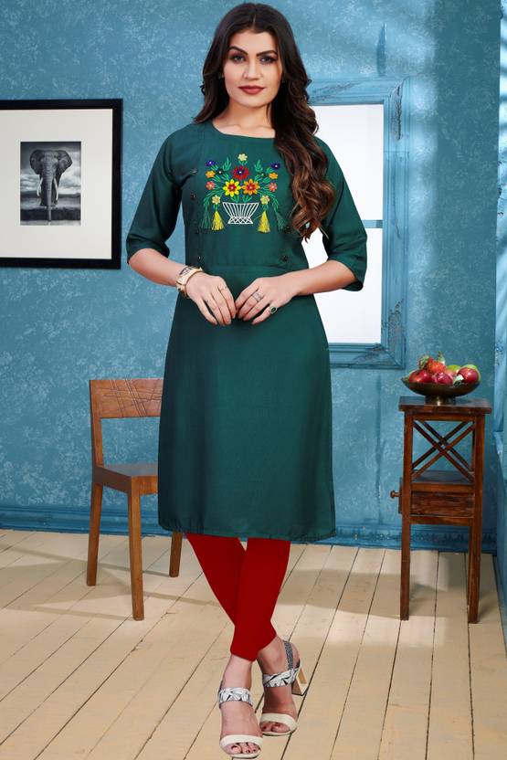 Freyaa Women Printed Viscose Rayon Straight Kurta (Dark Green)