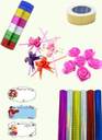 Character: GIFT PACKING SHEETS, FOAM FLOWERS, FLOWER RIBBON, COLOURFUL TAPES, DOUBLE SIDED TAPE