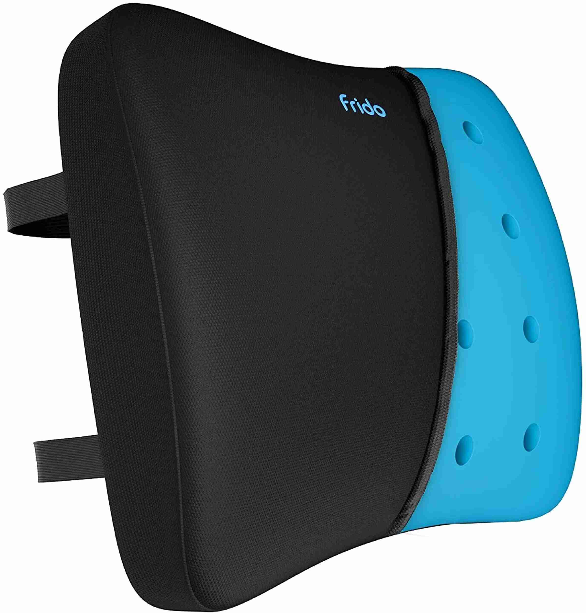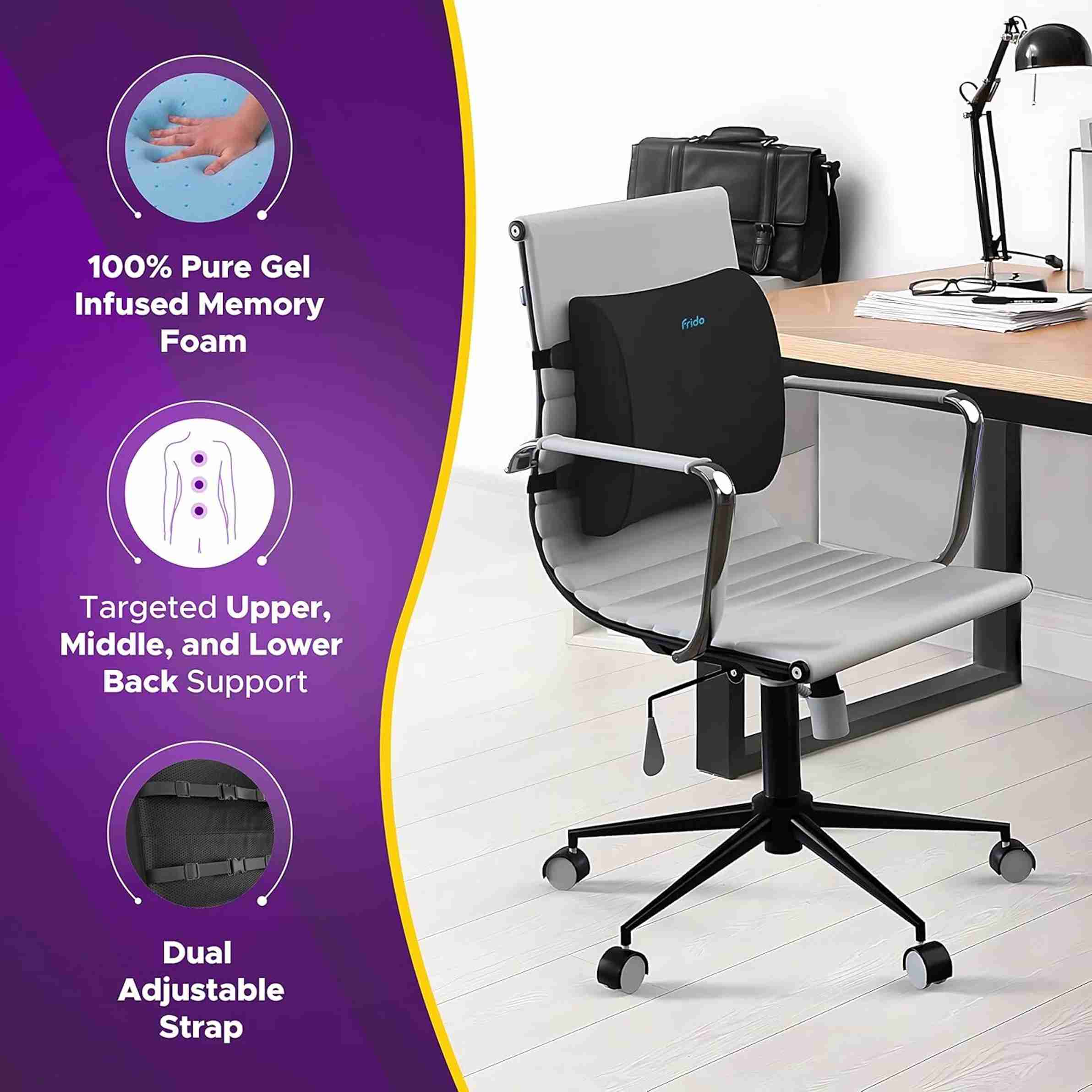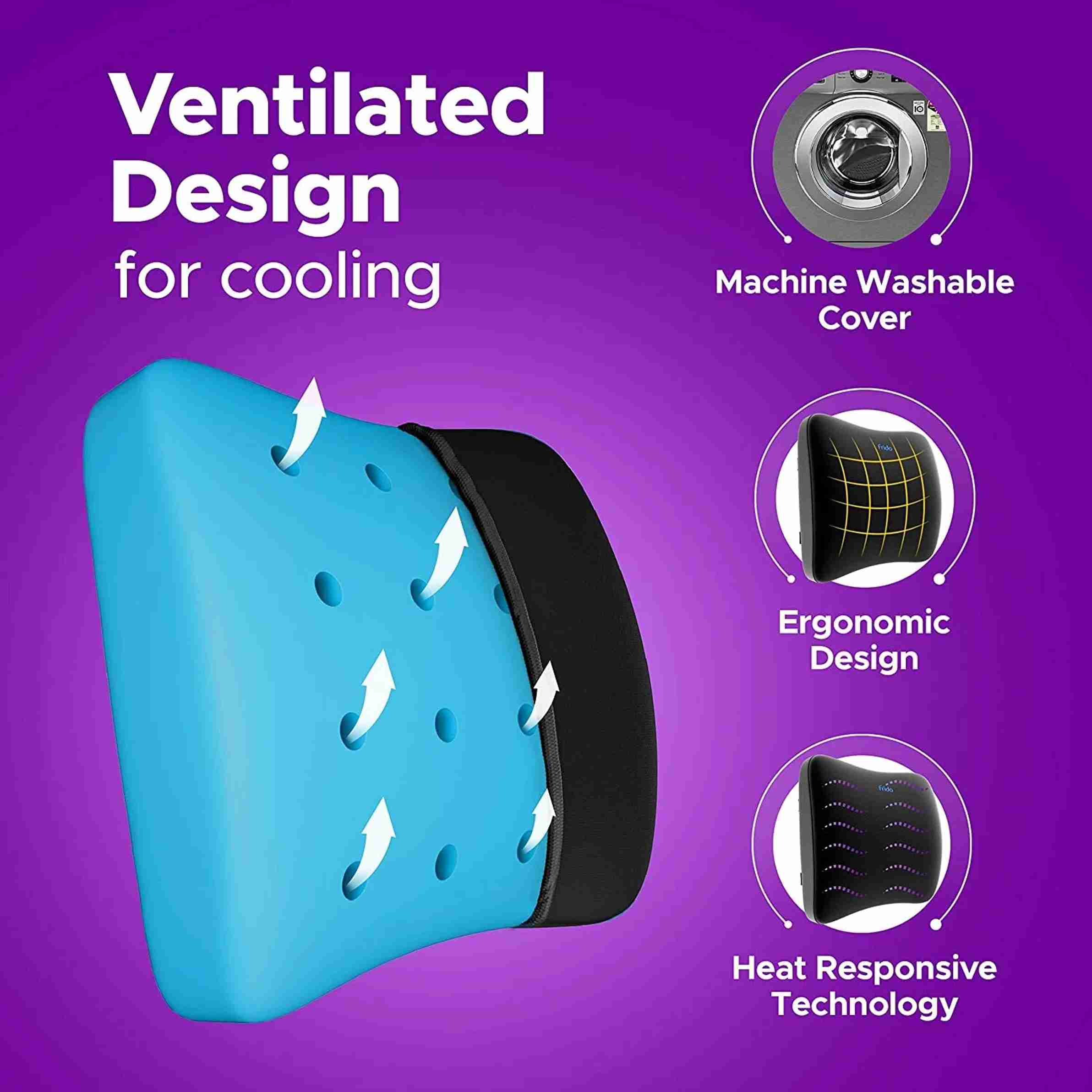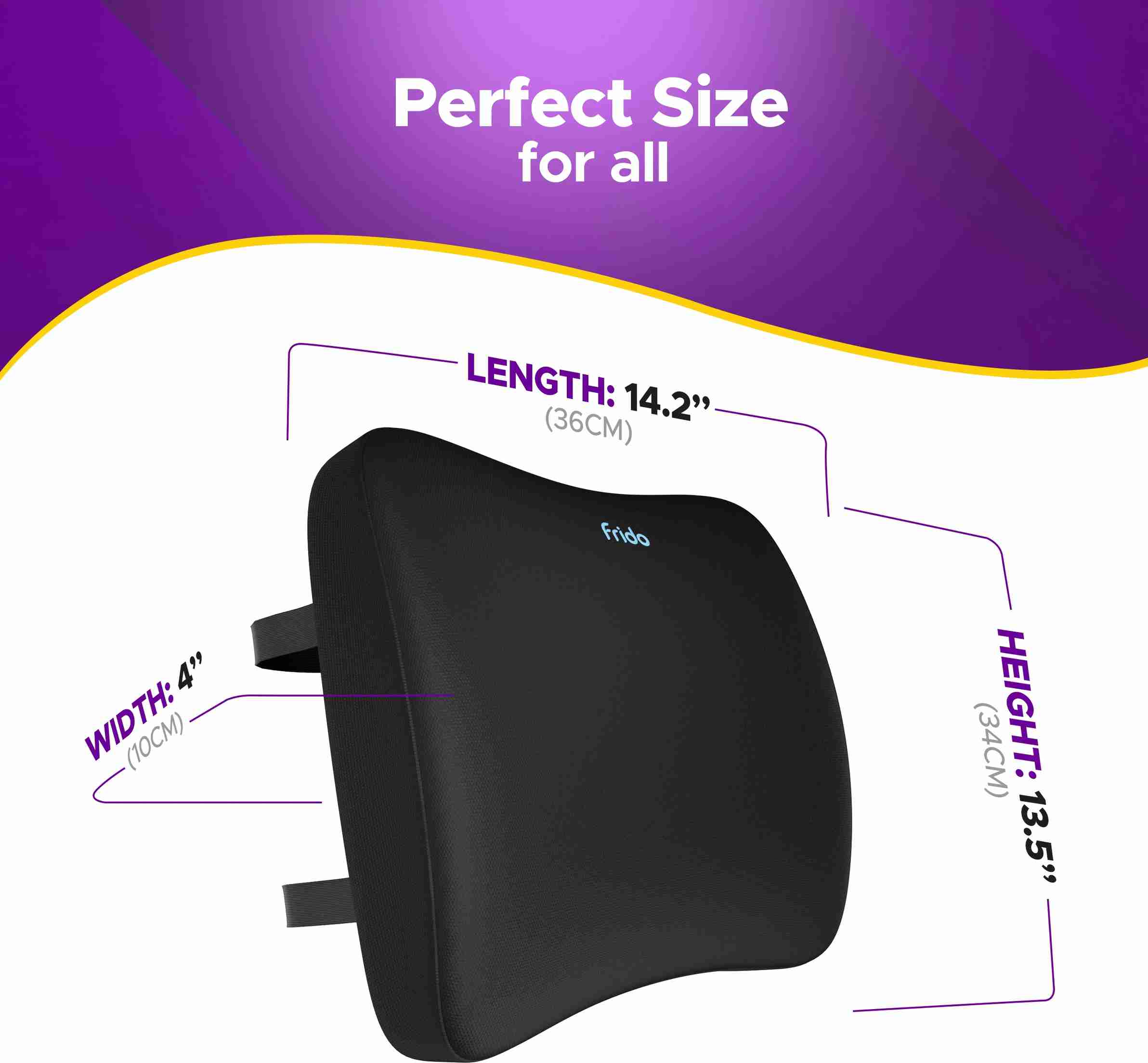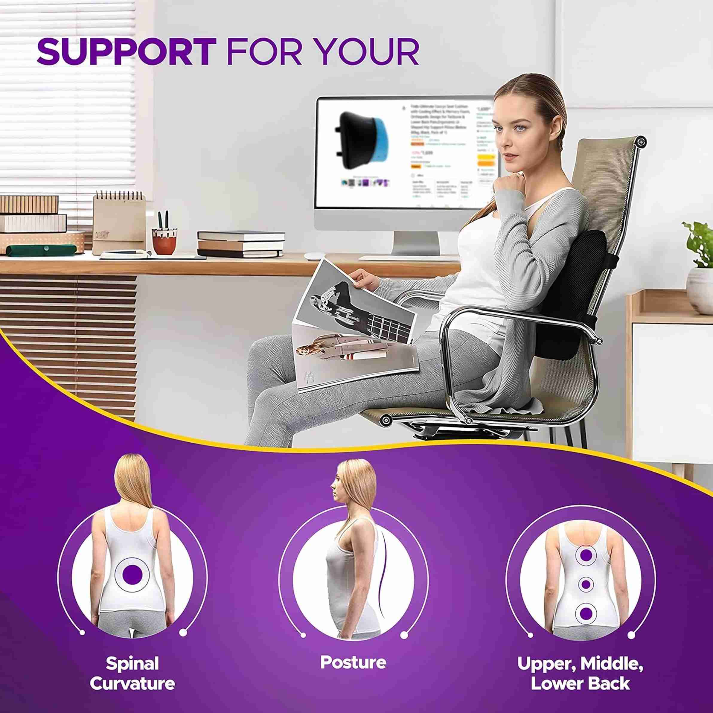 Back Support Lumbar Cushion, Improves Posture While Sitting, with Dual Strap Back / Lumbar Support (Black)