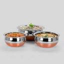 Stainless Steel Copper Bottom Cooking Handi Set Of 3 Pcs Fancy Kitchenware Rasoi Bartan / Cooking Bowl / Handi Set / Cookware Set / Serving Combo / Dinning Ware / Bowl Set / Tope / Patila / Tapeli Set