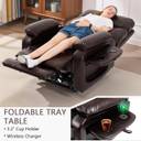 Equipped with 8 massage points, 5 vibration modes, and a lumbar heating function, the chair provides multiple options for relaxation. A foldable tray table with cup holder, wireless charging area, and USB/Type-C ports keep drinks and devices within reach, while the side pocket offers extra storage space.