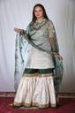 Dupatta: Gharara outfits are usually paired with a matching or contrasting dupatta, which is a long, rectangular piece of fabric. The dupatta is draped over the shoulders, adding a graceful touch to the overall look.