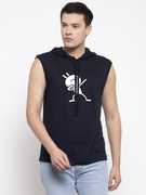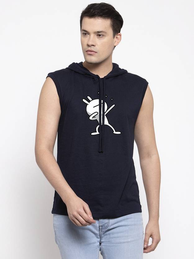 FRISKERS Graphic Print Men Hooded Neck Dark Blue T-Shirt