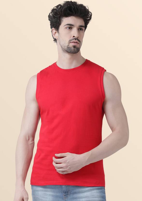 Men Red Plain Casual sleeveless Tank T-shirt