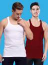 White Maroon vests, has a round neck, sleeveless. This muscle vest from Friskers will provide you that extra comfort while looking stylish. Made of cotton elastane, this sleeveless muscle vest can be teamed with jogger pants for a seamless workout experience at the gym. Quick drying Extra soft fabric.