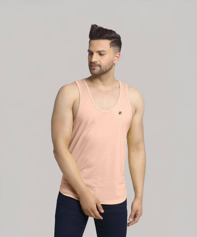 Men Coral solid Casual Cut sleeveless gym vest