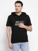 FRISKERS Printed Men Hooded Neck Black T-Shirt