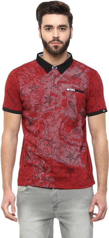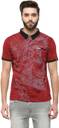 FRITZBERG Men Printed Polo Neck Cotton Blend Maroon T-Shirt