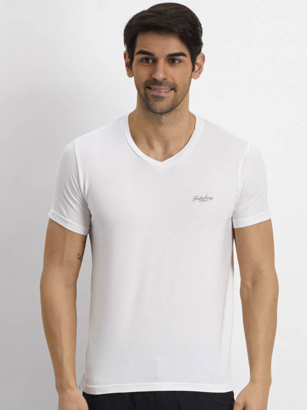 FRITZBERG F&G Basic Hs Noble White Men Solid V Neck Cotton Blend White T-Shirt