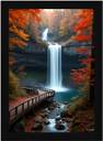 FRIZZY ARTS Crimson Falls Trail – Autumn Waterfall Digital Reprint 20 inch x 14 inch Painting (With Frame)
