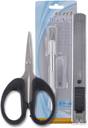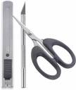 FRKB 3pc Craft Cutting Tools Set of Detail Pen Knife 18mm Steel Cutter & Small Scissor Plastic Grip Hand-held Paper Cutter (Set Of 1, Black, Blue)