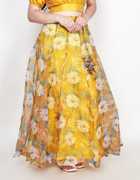 Introducing the Frolic Rolic Women's Floral Print Organza Flared Long Skirt, a stunning addition to your wardrobe that combines elegance and comfort. This skirt is perfect for any occasion, whether it's a casual day out or a special event. Made from high-quality organza fabric, known for its lightweight and breathable nature, this skirt features a beautiful floral print that adds femininity and charm. The flared design creates a graceful silhouette that flatters all body types. With its half elastic waistband, this skirt offers a comfortable and secure fit, allowing you to move freely and confidently. Pair it with a blouse and heels for a chic and sophisticated look, or dress it down with a t-shirt and sneakers for a more relaxed vibe. Whether you're attending a wedding, a garden party, or simply want to elevate your everyday style, the Frolic Rolic Women's Floral Print Organza Flared Long Skirt is a must-have addition to your wardrobe.