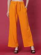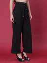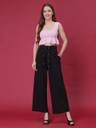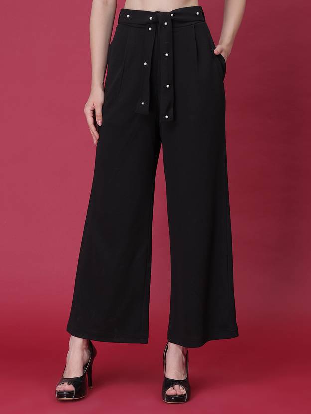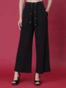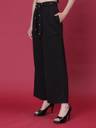 This Black Polyster trouser comes with a belt, has embellisment on it. It is full Length Parallel Trouser