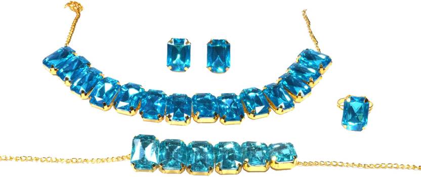 Get Frolics India Latest Stones Studded Choker Set with Bracelet, Ring and Matching Pair of Earrings to be Unique at Every Moment. Be Unique, Be Frolics