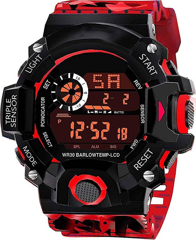frozil Watch for Men's Kids Watch for Boys - Watch for Men(Ts-R-M) Digital Watch - For Men Shockproof Multi-Functional Red Strap Waterproof Digital Sports