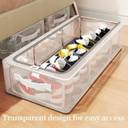 Our Foldable Shoe Storage Boxes designed to save you space while keeping your shoes neatly organized.Made from high-quality clear plastic, these shoe boxes offer full visibility of your footwear.Featuring both side and top zippers, these storage boxes provide versatile access to your shoes. The dual-opening design makes it easy to retrieve and store your shoes, whether you're using them for daily wear or long-term storage. When the shoe storage cabinet is idle, it can be folded and stored, and can be placed under the bed or on the top of the wardrobe to save more space.Multi-functional storage box, clear shoe box can not only store shoes, but also can store clothes, pants, socks, stationery, etc., can be used in bedrooms, dormitories.