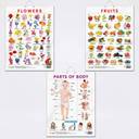 "Introducing Gowoo's Educational Charts Trio—Fruits Chart, Flowers Chart, and Parts of Body Chart—meticulously crafted to ignite the curiosity and knowledge of young minds aged 2 to 15. Sized perfectly at 15*20 inches, these charts boast a glossy laminated finish in four vibrant colours, ensuring durability and visual appeal that captivates children.