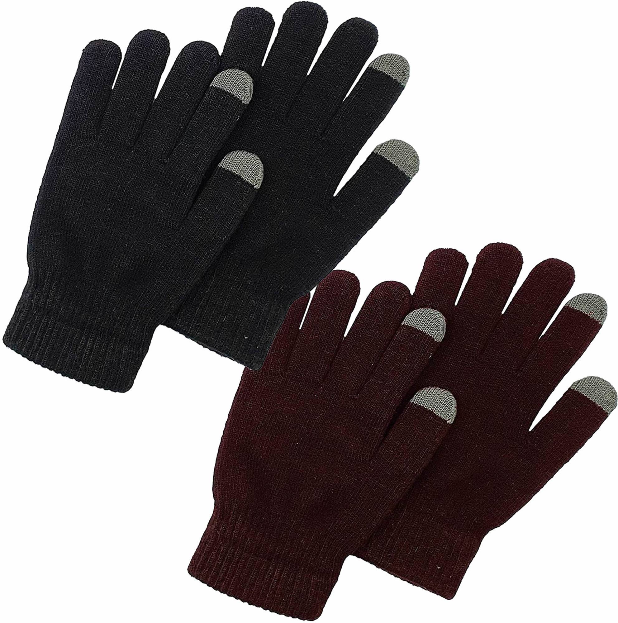 Winter Warm Wool Touch Gloves 2Pair (Black,Brown)