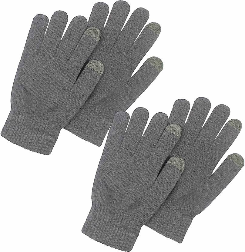 Winter Warm Wool Touch Gloves 2Pair (Grey,Grey)
