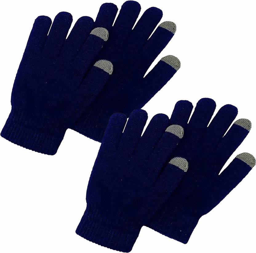 Winter Warm Wool Touch Gloves 2Pair (Blue,Blue)