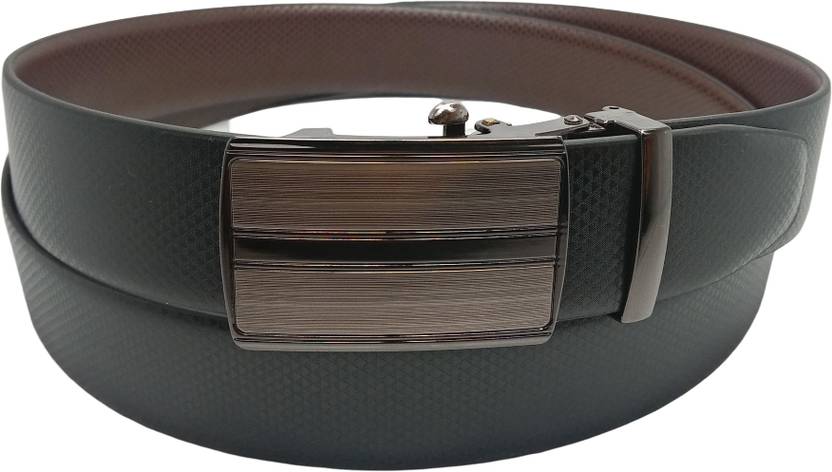 Auto Lock Buckle Reversible 2 colour No More Holes & Free Size Belt : Nukaichau Industry Introducing a unique sliding mechanism. No pushing. No pulling. Just slide the belt into the buckle and adjust for a superbly comfortable fit. This buckle simply auto-locks the belt. To release, just gently push the lever. One big size that fits all waist (16,18,20,22,24,26,28, 30, 32, 34, 36, 38, 40, 42, 44,46). Made from full grain vegan synthetic leather (Pu-Leather). Handcrafted for those who do not like animal leather products. Adjustable up to waist 44. To adjust, trim the belt according to your size by removing the buckle and cutting the edge as per your waist. This belt will add a stylish look to your jeans, chinos, formal pants and trousers. Perfect gift for your loved ones. Stylish nickel-free zinc alloy buckle that is elegantly designed with class.