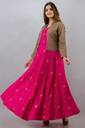 The kurta of this outfit features a tasteful touch of decoration with three buttons added at the chest portion, serving as stylish accents. These decorative buttons offer a subtle and elegant element to the gown's overall design. They create a focal point on the kurta, drawing attention to the upper body, and adding a hint of sophistication to the outfit.