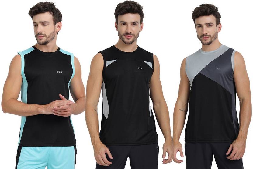 FTX Colorblock Men Round Neck Black T-Shirt