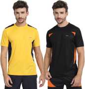 Comfort and Style.This multi purpose T-shirt is made with Dry fit material with sweat-absorbent technology. Trendy & long lasting colour and trnedy cuts to give edge to your wardrobe. Well defined fit takes shape of your body keeping the comfort of a casual wear intact. Can be used as Sports-Active-Casual wear. Can pair this with Denim-Tracks-Shorts.