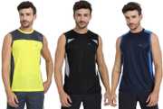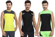 This dry fit sleeveless t-shirt will give your personality an extra edge. Special sweat absorption wash on this makes it a perfect activity wear. Team it up with nice pair of shorts or tracks with shoes to complete your look.