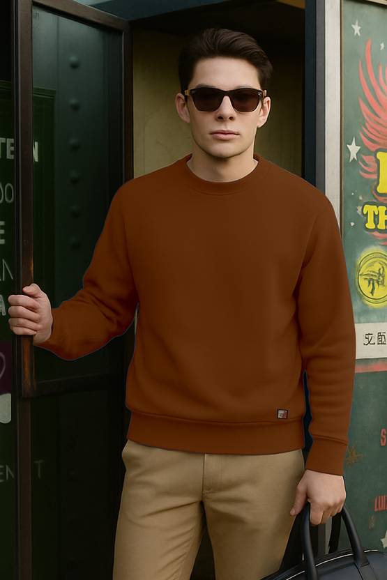 FTX Men Solid Full Sleeve Both Side Pocket With Zipper Brown Sweatshirt