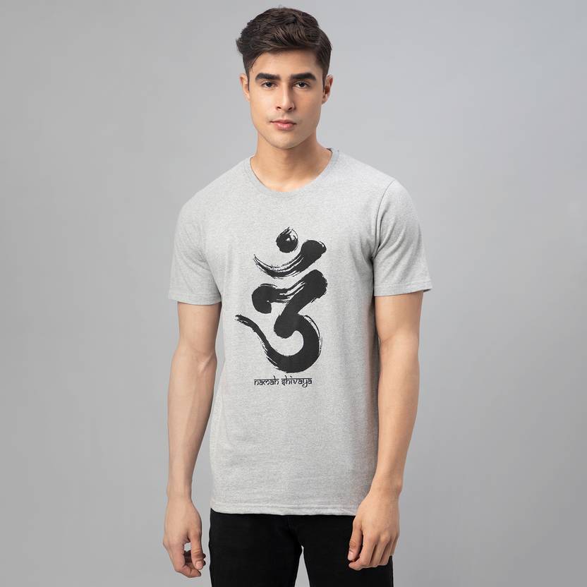 FTX Men Graphic Print Round Neck Pure Cotton Grey T-Shirt