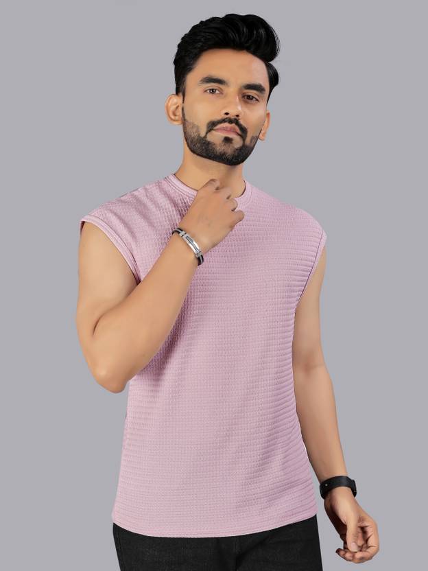 FTX Men Round Neck Solid Sleeveless Cotton Blend Purple Vest