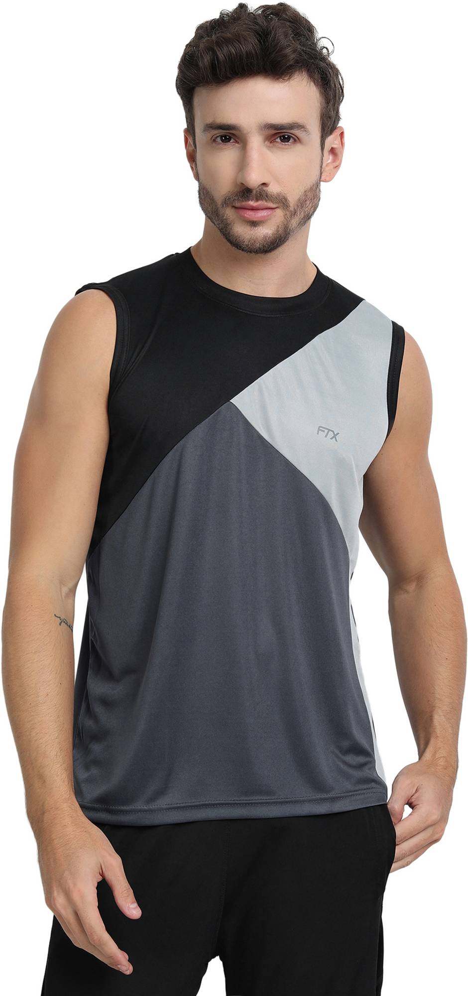 FTX FTX Men Colorblock Round Neck Grey Vest Men Vest