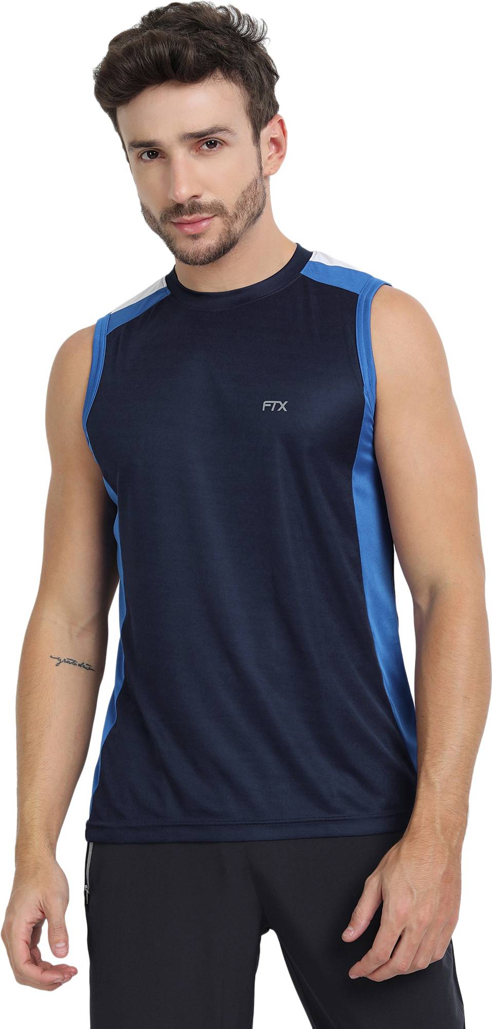 FTX Men Colorblock Round Neck Navy Blue Vest