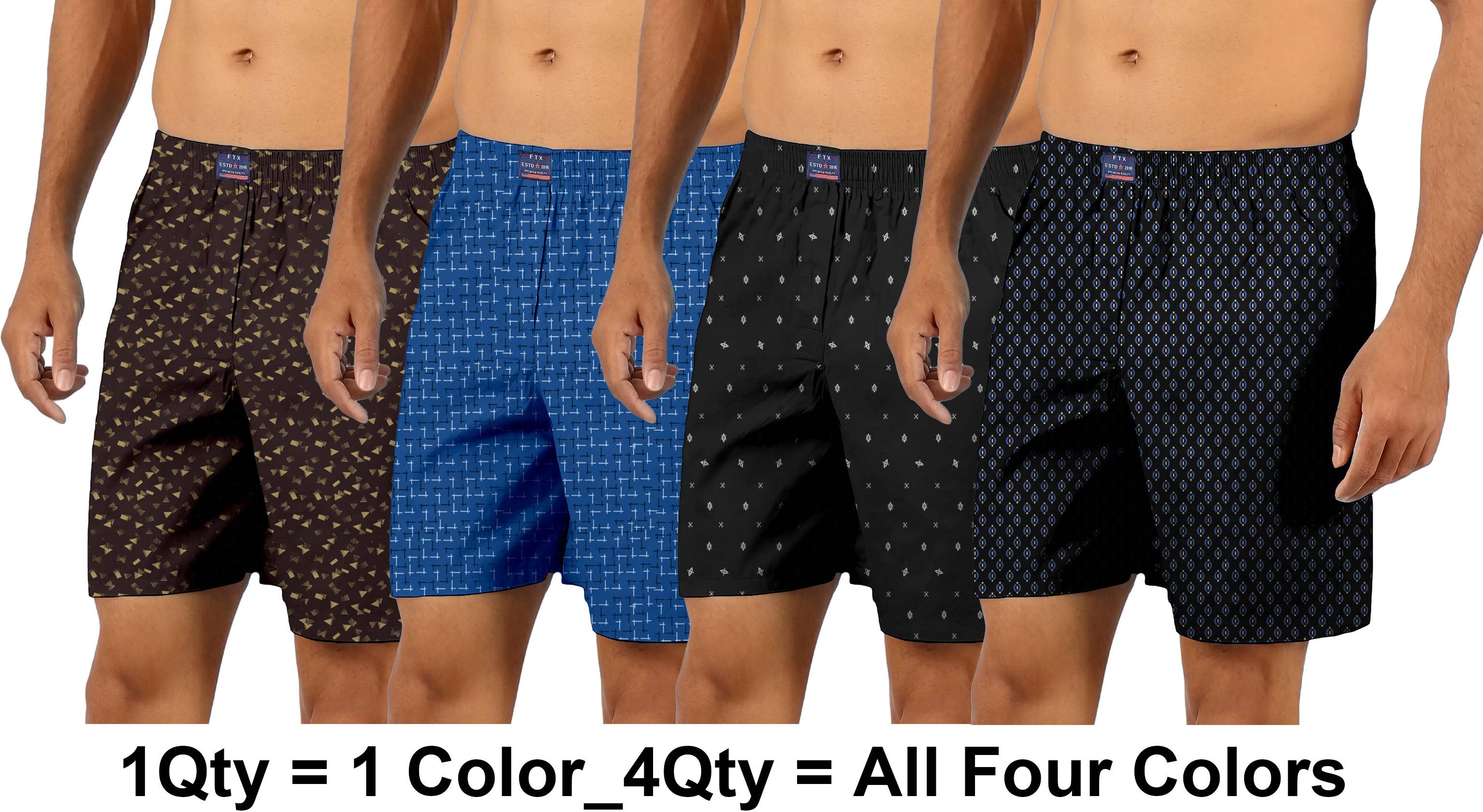 Feel at ease with these branded and comfortable Boxers for men from the house of FTX. A pair of boxers is a must-have in the closet of every man but choosing one based on the right fit and fabric sometimes becomes a task in itself. These boxers are soft and cozy 100% cotton fabric takes you from the boardroom to the living room with all-day comfort. Long-lasting colors resist fading and stay vibrant after multiple washes. These boxer shorts are perfectly functional for everyday wear. If you are a young, adventurous, fiery soul. These boxer shorts come equipped with a button fly for quick and easy access. There is no zipper. The waistband is made from high-quality elastic which can stretch to ensure maximum flexibility and lasts really long. This product has a regular fit & medium rise. Can be worn as Underwear, Lounge-wear, Leisurewear and Comfort-wear. These boxers are very easy to take care of. A regular cold machine wash and dry in shade is recommended. Do not use bleach or any coloring agents.