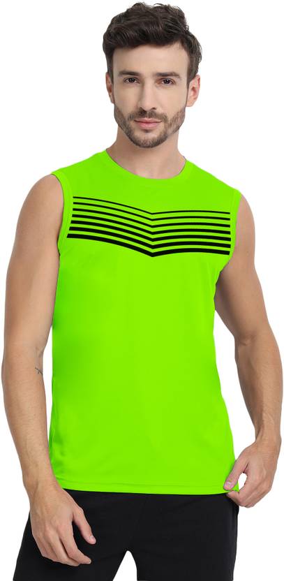 Try our exclusive dry fit sleeveless t-shirt. Bright colours to give your personality an extra edge. Special sweat absorption wash on this makes it a perfect activity wear along with casual wear. Team it up with nice pair of shorts or tracks with shoes to complete your look.
