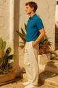 FTX Men Solid Polo Neck Polyester Blue T-Shirt