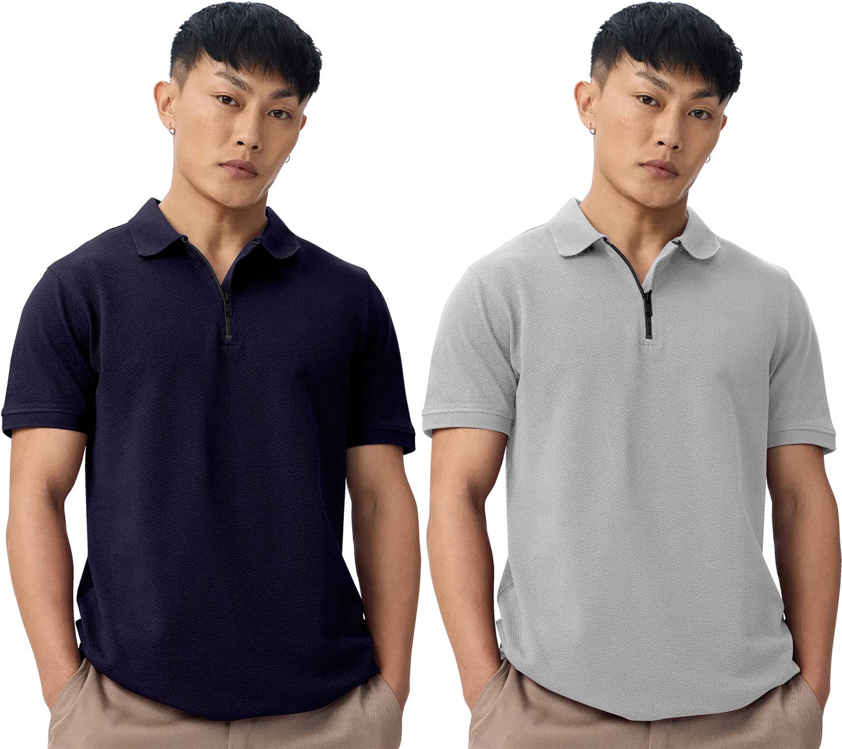 FTX Pack of 2 Men Solid Polo Neck Cotton Blend Multicolor T-Shirt