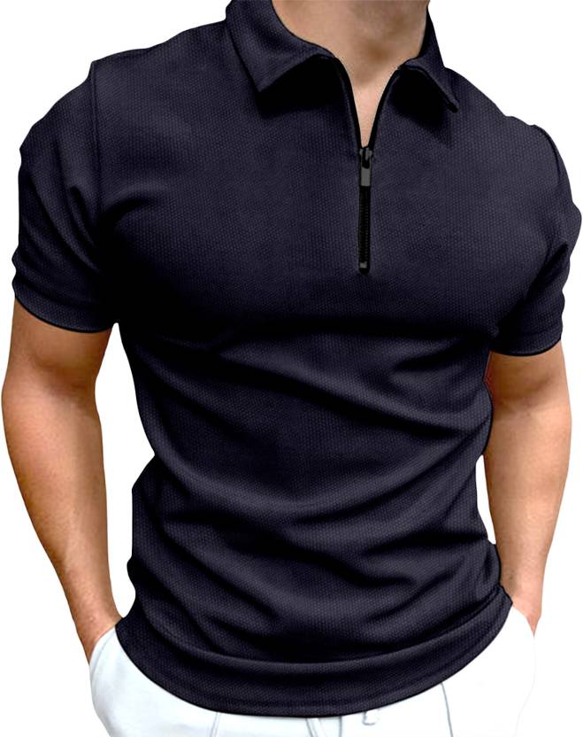 Wear this ultra-comfy Zipper Polo Neck Half Sleeve T-shirt from FTX . Place in many ways with jeans, cuffed chinos. Its made of premium popcorn fabric. solid color, Machine wash t-shirt. Its super dry and ultra-fashionable must have t-shirt in your wardrobe.