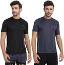 FTX Pack of 2 Men Solid Round Neck Polyester Black, Grey T-Shirt