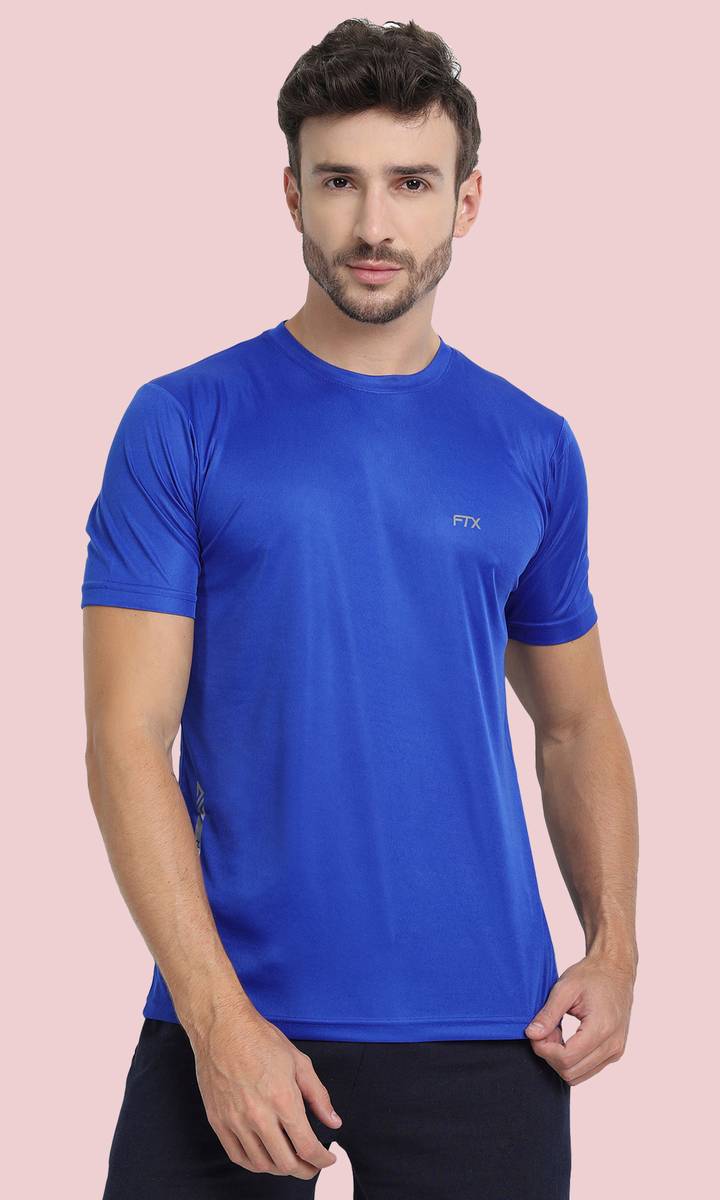 FTX Men Solid Round Neck Polyester Blue T-Shirt