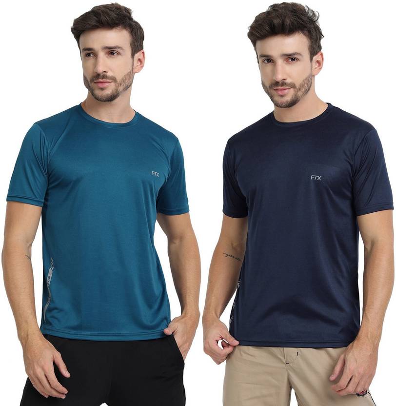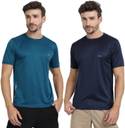 FTX Pack of 2 Men Solid Round Neck Polyester Dark Blue, Blue T-Shirt